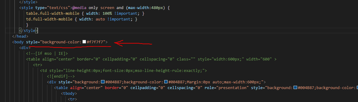 - Change the email body colour by adding
